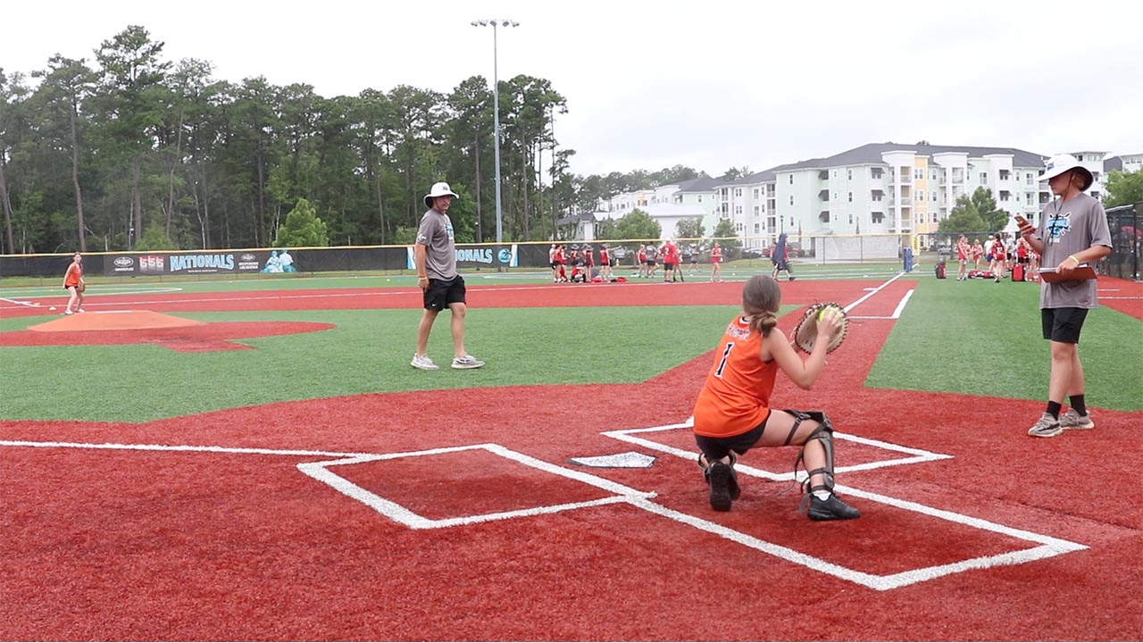 - Each player will receive three throws in the Catcher’s Crouched Position from a person of their choice. Once the player receives the ball from behind home plate, they will then throw the ball to second base.